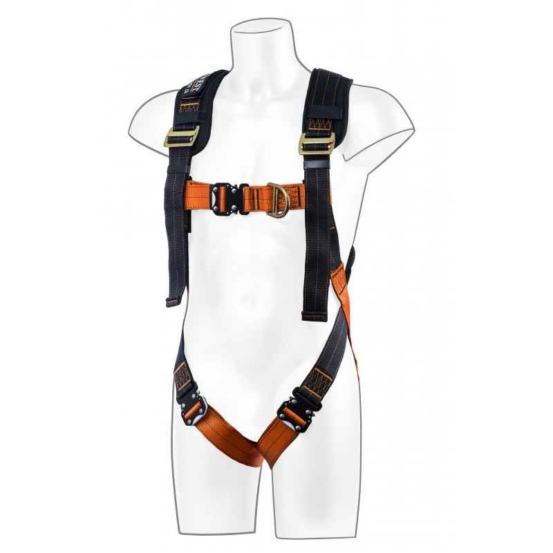 Ez a teljes testheveder hátsó és elülső Dgyűrűkkel rendelkezik. Gyors kioldó csatokkal. Szakadás jelző indikátorral ellátva.